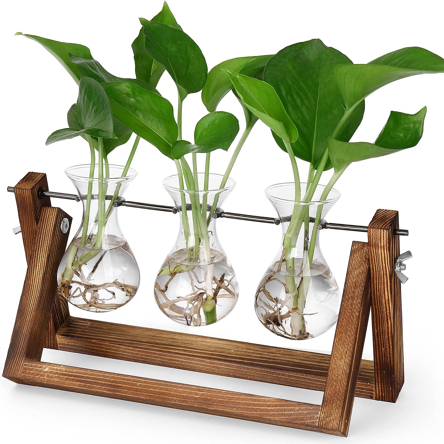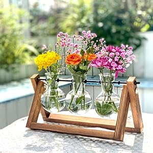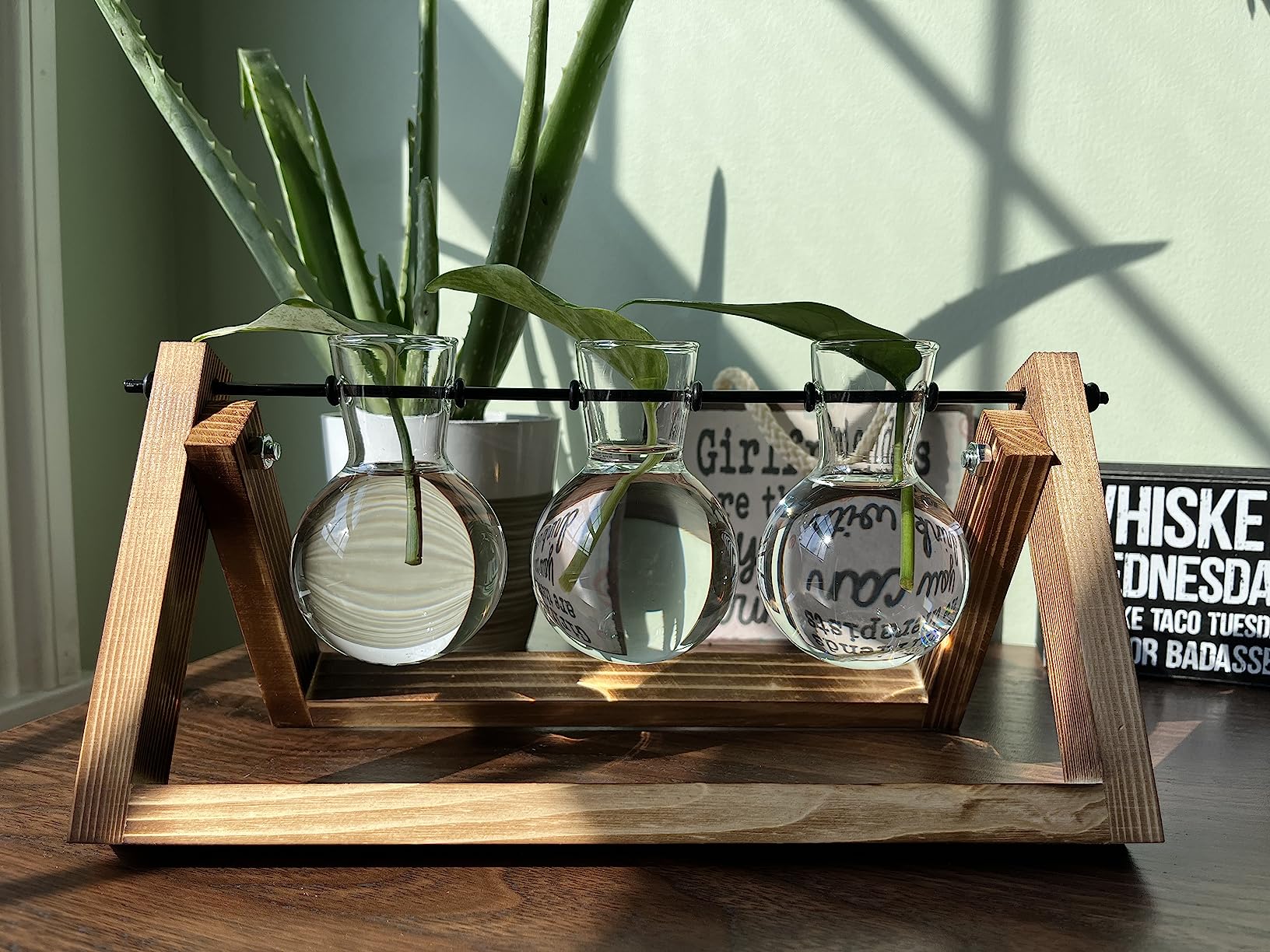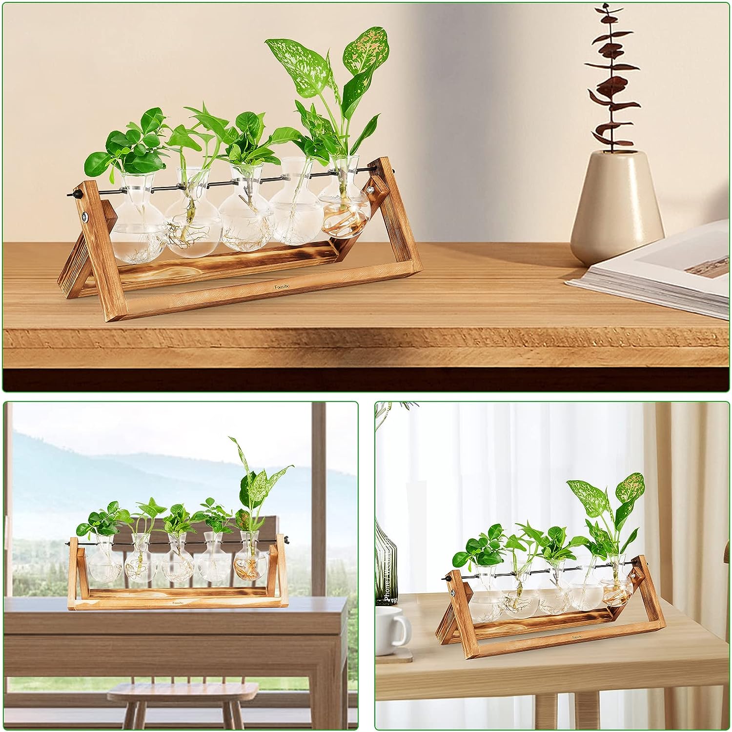 Natural wood has a unique textures, light but firm, high transparent borosilicate glass is smooth without scratches, allowing you to observe the growth of plants more clearly. Great for growing houseplants and can purify indoor air and good for health.