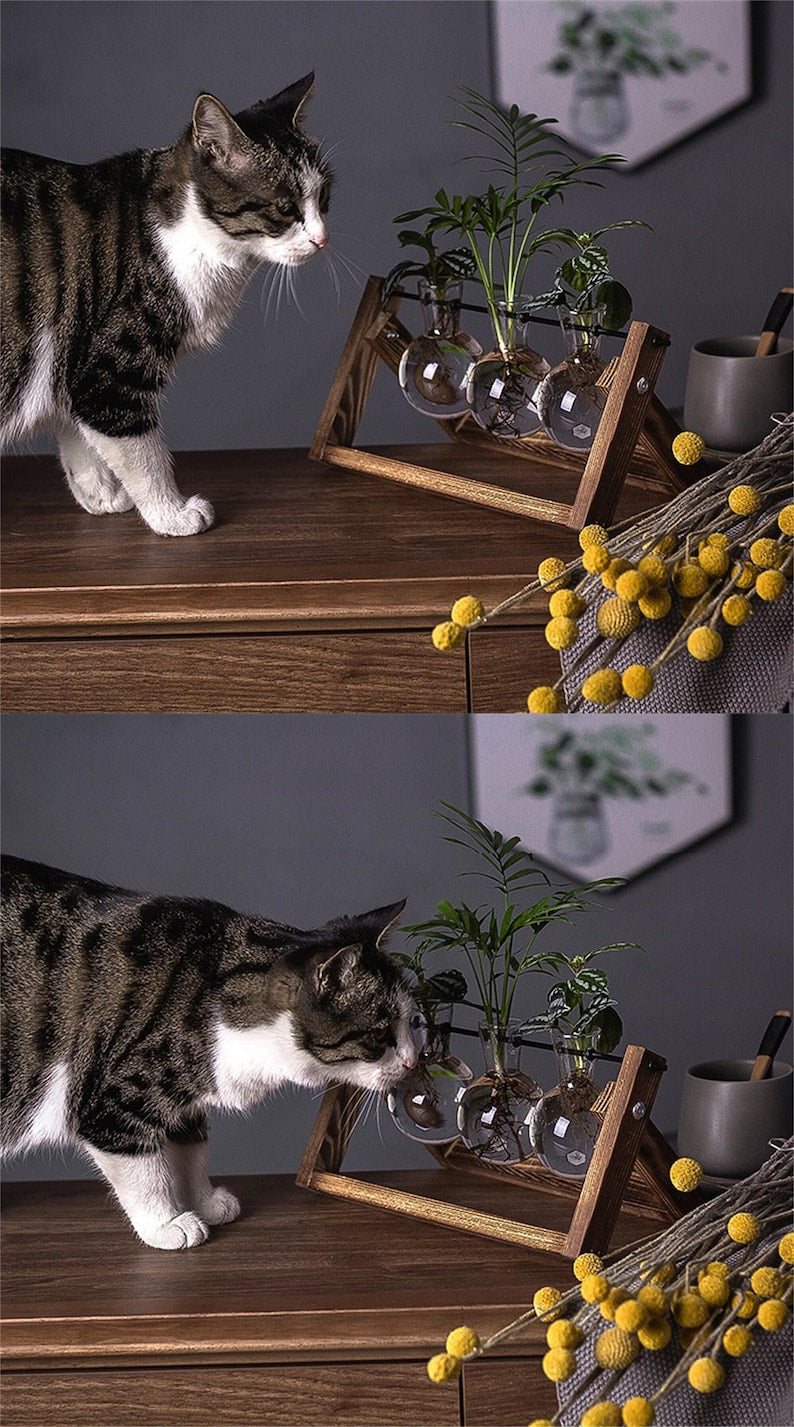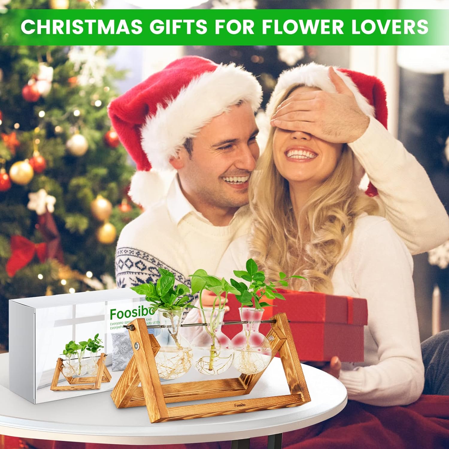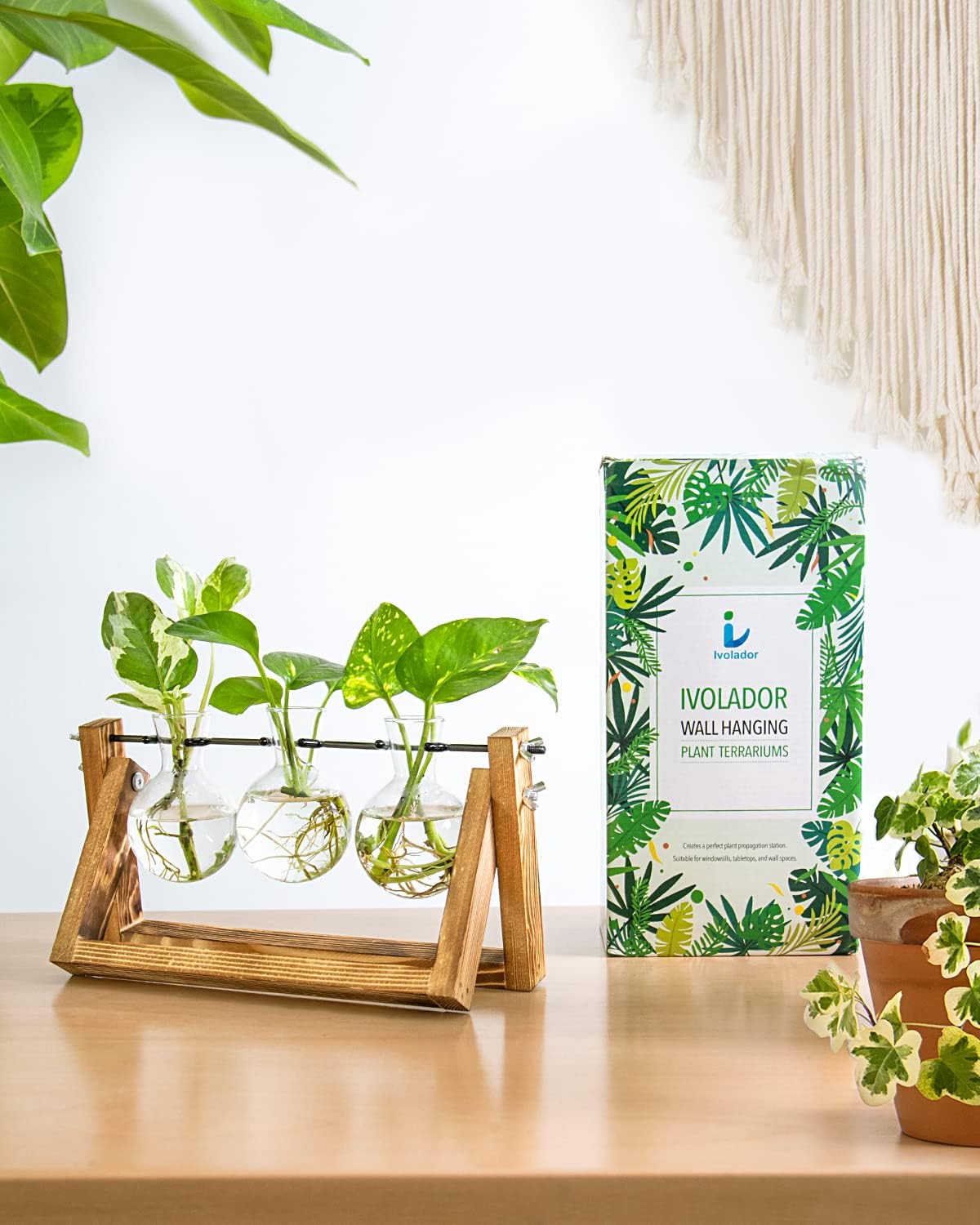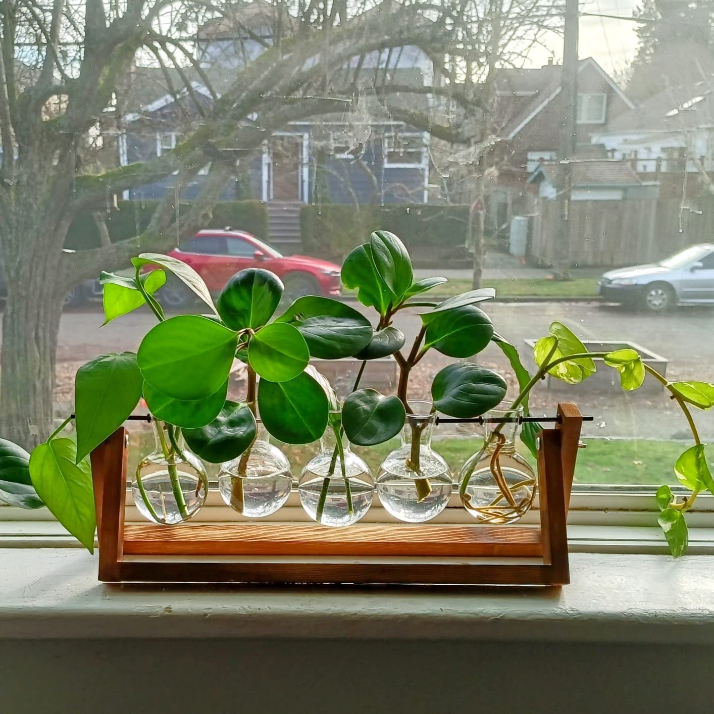 Retro wooden plant propagation station glass for Desktop , perfect for growing plants houseplants, for example water plants or fern.